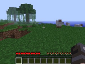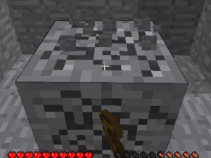Na levi strani spodaj imamo srčke. Ti pomenijo, koliko "življenje" imaš. Če padeš z visoke gore, lahko izgubiš vse srčke, če pa iz majhne, pa lahko kakšne 3. Te se ozdravi z zlatimi jabolki. Na desni strani spodaj imamo nekakšno meso. To pomeni, koliko si lačen. Če imaš vse polno, nisi nič lačen, če pa vse prazno, moraš nujno pojesti kakšno meso ali jabolko. Da povem še nekaj o podiranju in postavljanju kock. levi klik (tako da tiščiš) = podiranje desni klik = postavljanje |