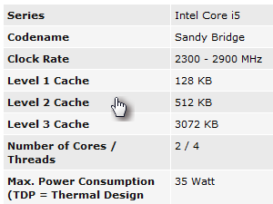 ![]() Na strani v tabeli poiščemo procesor našega prenosnika. |
