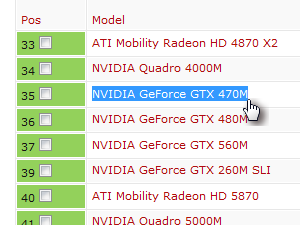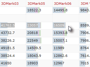![]() Spet pa nas bolj zanimajo podatki v prejšnji tabeli, kjer lahko zraven modela zopet vidimo, kako se je grafična kartica obnesla v različnih programih. |