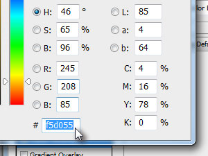 V novem oknu za določanje barve v polje # vpišite f5d055 in kliknite na gumb OK.