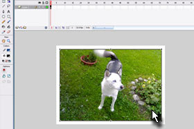 Kliknite potem na kvadratek (frame) pod številko 30, označite še enkrat sliko in potem v oknu Properties še enkrat določite Color Alpha z 0%.