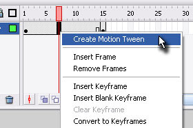 Potem pa spet na sivo polje kliknite z desnim miškinim gumbom in izberite Create Motion Tween. |