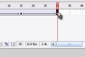 Sedaj pa označite v polju Timeline kvadratek (frame) pod številko 30 in pritisnite tipko F6.