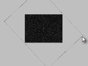 S tem ukazom ste v celoti označili layer. Sedaj pa ga bomo pretvorili v način transformiranja in ga obrnili okoli osi. Kliknite zgoraj na Edit in izberite Free Transform. Držite layer za nek poljuben rob in ga obrnite okoli svoje osi (glej sliko). Če želite, da se layer samo vrti okoli svoje osi in ne spreminja velikosti, držite tipko Shift. V nasprotnem primeru se vam lahko efekt popači. |