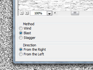 Kliknite zgoraj na Filter, Distort in izberite Wind... V novem oknu nastavite iste vrednosti kot jaz in kliknite na gumb OK. |
