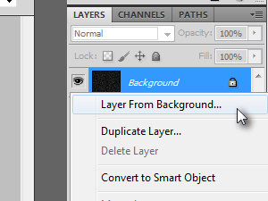 Kliknite z desnim miškinim gumbom na layer Background in izberite Layer From Background... |