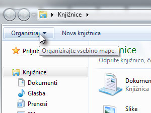 V Raziskovalcu kliknite na Orgraniziraj ...