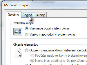 Odpre se okno z možnostmi mape, kjer kliknete na zavihek Pogled.