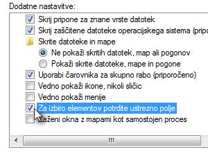 Sedaj pa se postavite v neko mapo, kjer imate datoteke ali mape in jih začnite selektivno označevati.