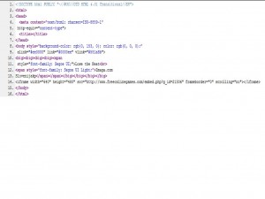 ![]() Zdaj se premaknemo v pogled izvorne kode (ang. Source) in prilepimo kodo, ki smo jo kopirali. Kopiramo v prostor med <BODY> in </BODY>. |