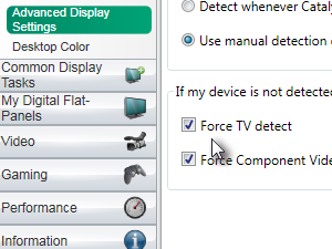 V kolikor vam vaše naprave ne zazna, lahko v Advanced Display Settings poskusite oblkjukati možnost Force TV detect ali Force Component Video detection.