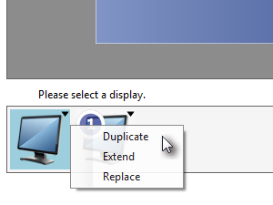 V Windows obstaja bližnjica na tipkovnici Windows tipka + P, ki nam odpre okno, v katerem lahko enostavno spremenimo, na kakšen način oz. na katerem monitorju naj se prikazuje slika. |