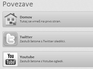 Na prvi strani pod Povezavami si lahko izberete, na kateri način boste zaslužili žetone. (Facebook, Twitter, Google +1, YouTube ali Auto-Surf)