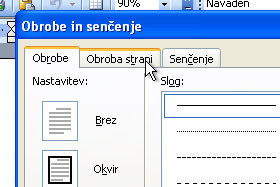 Ko boste nastavili dolžino, kliknite na gumb V redu. Tudi okno Obrobe in senčenje zaprite s klikom na gumb V redu. |