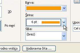 Širino roba sem nastavil 6 pt, kar je tudi največja nastavitev.