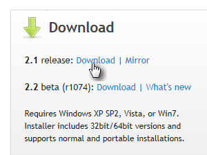 Najprej se odpravimo na spletno stran Rainmeter. Poiščemo gumb Download in izberemo 2.1 release. Rainmeter deluje na Windows XP/Vista/7. |