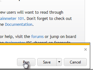 Če vas brskalnik obvesti, da založnik programa Rainmeter ni preverjen, le pritisnite Run. |