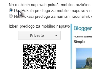 Kliknite na Da, pokaži predlogo za mobilne naprave.