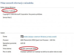 Odprite Nadzorno ploščo, nato pa kliknite Sistem in Varnost in zatem Sistem. Pokažejo se vam podatki. Poglejte to, kar sem označil.