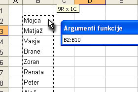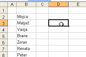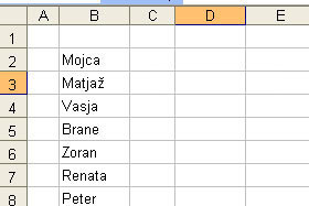 Potem pa v celice vpišite poljubna imena (glej sliko).