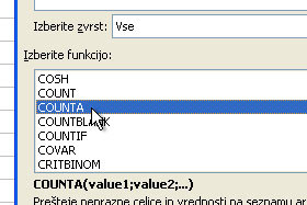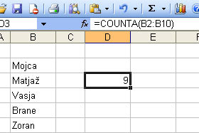 Formula COUNTA nam lahko velikokrat pomaga, če želimo sešteti polja, ki ne vsebujejo številk in formul. |