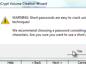 Če mislite, da je geslo dovolj dobro, lahko potrdite s klikom na gumb Yes. |
