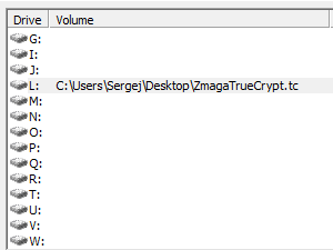 Da lahko program uporabljamo, moramo najprej ustvariti novo šifrirano particijo na našem disku. V seznamu izberemo eno izmed črk, preko katere bomo kasneje dostopali do podatkov. |
