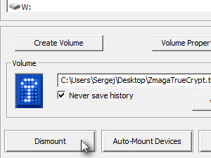 Ko particije več ne potrebujete, jo lahko zopet skrijete s klikom na gumb Dismount in tako particija ne bo več vidna.