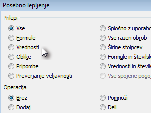 ![]() Odpre se nam pogovorno okno, kjer izberemo, katere lastnosti celice želimo prilepiti. |