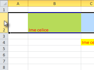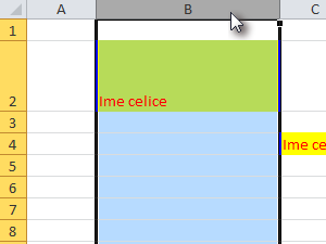 ![]() Podobno lahko seveda naredimo tudi s širino celice, tako da označimo celoten stolpec. |