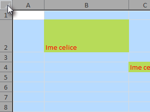 ![]() Če želimo kopirati tako višino kot tudi širino, pa lahko kliknemo v zgornjem levem robu, da označimo tako vrstice kot tudi stolpce. |