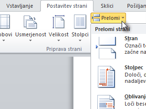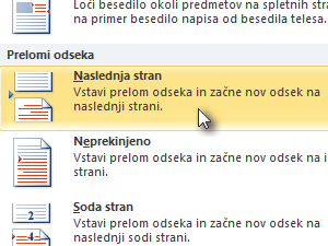 ![]() Pod kategorijo Prelomi odseka izberemo možnost Naslednja stran. |