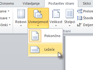 Če želimo, lahko znotraj dokumenta določeno stran spremenimo v ležeči položaj.