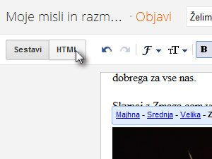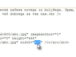 ![]() Postavite se nazaj v okno, kjer v kodi HTML urejate vaš članek in spremenite vrednosti height in width, ki ste jih dobili v prejšnjem koraku. |