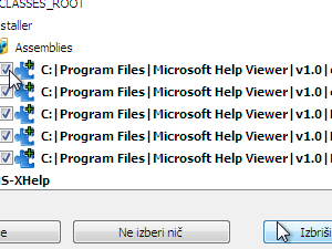 Pozorno jih preglejte ter izberite tiste, ki jih ne potrebujete več, če pa ne rabite ničesar več od tega programa, kliknite kar na gumb Izberi vse. Nato brisanje potrdite s klikom na gumb Izbriši. V opozorilu zopet kliknite na gumb Da, da se brisanje izvede. Datoteke in mape bodo premaknjene v Koš, tako da jih lahko še vedno obnovite, v kolikor ste kaj spregledali. Za dokončno brisanje, morate še izprazniti Koš.