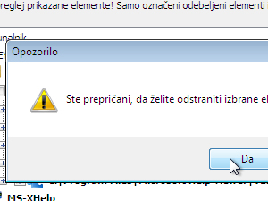 Odpre se pojavno okno, ki sprašuje, če ste prepričani da želite odstraniti izbrane elemente registra.