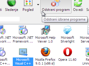 Izberite ali najdite program, ki ga želite odstraniti ter nanj dvakrat kliknite ali v zgornji vrstici kliknite na gumb Odstrani program.