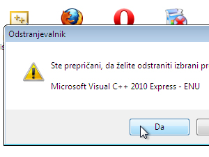 Kliknite na gumb Da ter zatem v oknu za odstranjevanje programa Naprej.