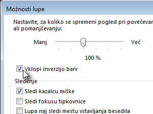 Za vklop inverznih barv bomo uporabili program Lupa.