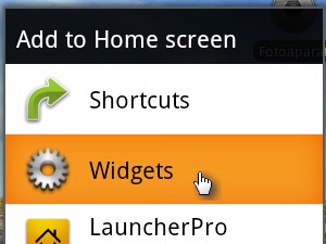 Sedaj bomo na domači zaslon dodali še Pripomoček oz. Widget. S prstom zopet pritisnemo na prazen del zaslona brez ikon in prst držimo pritisnjen vsaj sekundo. |