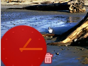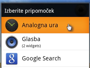 Če želimo, lahko pripomočke in tudi bližnjice enostavno prestavimo na drugo mesto. Zopet s prstom pritisnemo ikono in držimo prst pritisnjen vsaj eno sekundo. Ikono ali pripomoček lahko sedaj prenesemo na poljubno mesto. |