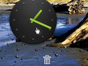Pripomočke in ikone lahko seveda tudi odstranimo iz namizja. To storimo podobno kot v prejšnjem koraku, s tem da ikono prenesemo na ikono z obliko koša, ki se običajno nahaja na dnu ekrana. S tem smo samo odstranili bližnjico, medtem ko bo sama aplikacij še vedno ostala na našem telefonu. |