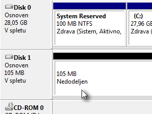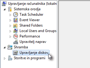 ![]() Upravitelj diskov zaženemo tako, da na levi strani izberemo možnost Upravljanje diskov. |