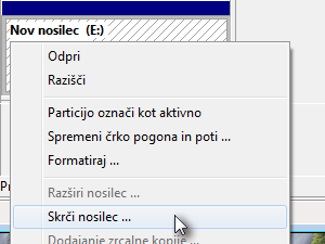![]() Uporabna možnost je tudi Skrči nosilec ..., s katero lahko particijo razdelimo na dva dela. |