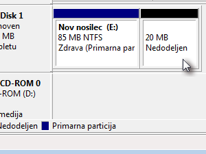 ![]() V mojem primeru sem tako iz obstoječe particije ustvaril novo 20 MB veliko particijo. |