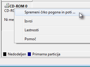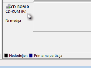 ![]() V mojem primeru se bo sedaj CD-ROM po novem predstavljal pod črko P: |