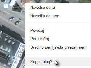 Ker bi rad pokazal zelo točno lokacijo oziroma kar hišo, sem kliknil na določen objekt z desnim miškinim gumbom in izbral Kaj je tukaj? (glej sliko).
