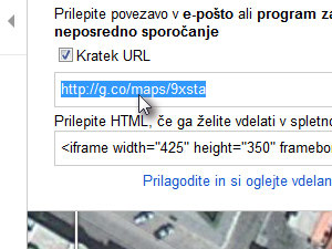 Google zemljevidi vam ustvarijo povezavo, katero označite in kopirate, mi pa bomo povezavo raje skrčili.
