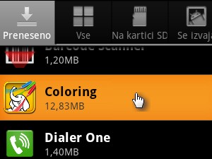 ![]() Prikazal se bo seznam vseh aplikacij, ki smo jih namestili na telefon. Zraven je tudi napisana vrednost, ki jo aplikacija zaseda na našem telefonu. |