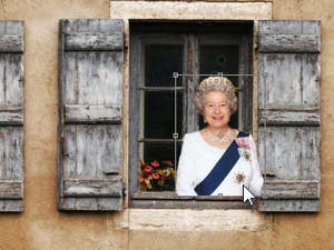 ![]() Pritisnite tipki Ctrl + T, da osebo še transformirate na položaj pri oknu (glej sliko). |